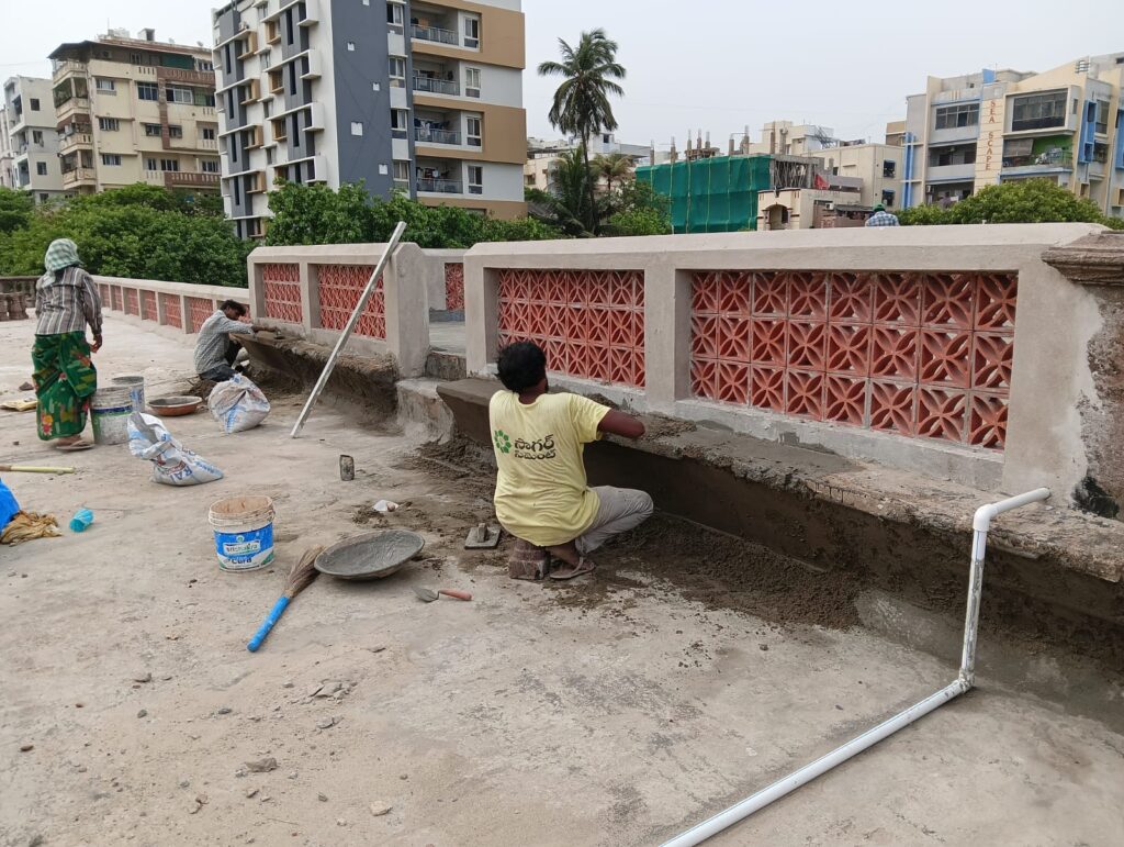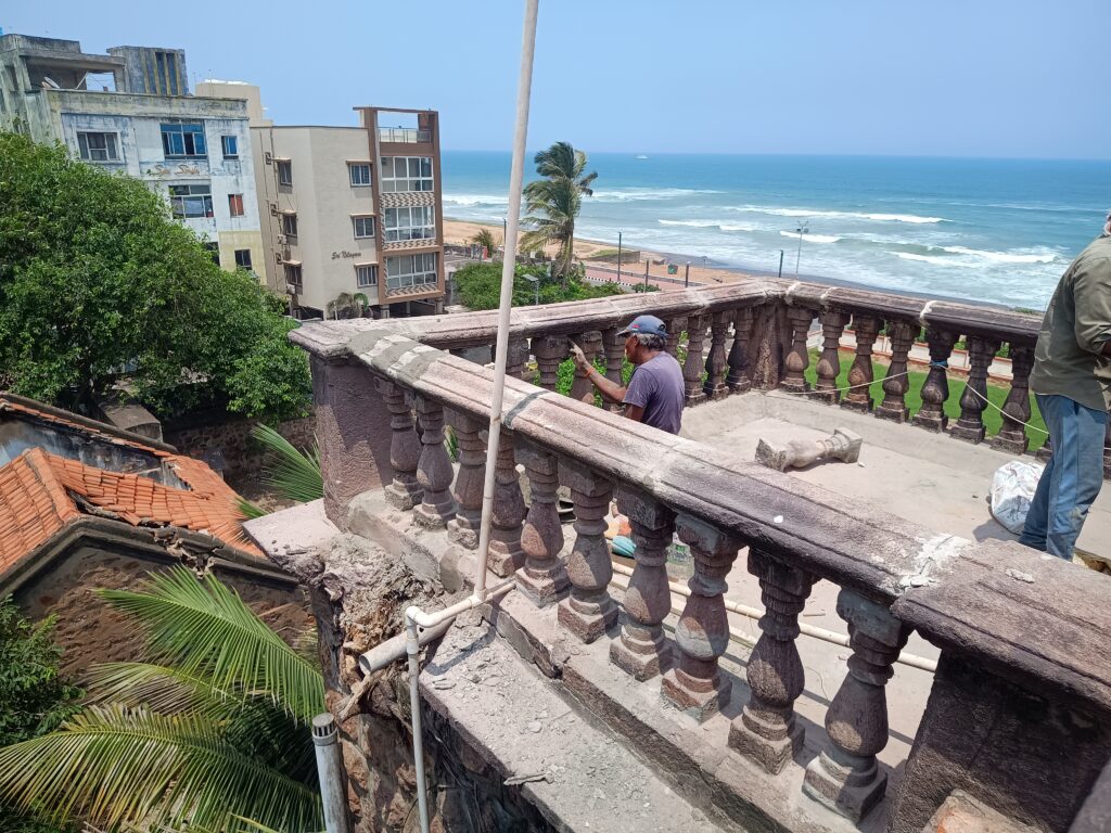The Hawa Mahal in Visakhapatnam, a cherished heritage landmark, was meticulously conserved to preserve its airy elegance and historical charm. Working as an in -house consultant I have overseen restoration works, execution and documentation of the structure. Terrace works, restoration of outhouses, sloping roofs and lime works are being executed as well as structural restoration. This endeavor, blending traditional craftsmanship with modern resilience, revitalized the Mahal’s architectural legacy, safeguarding its cultural significance.