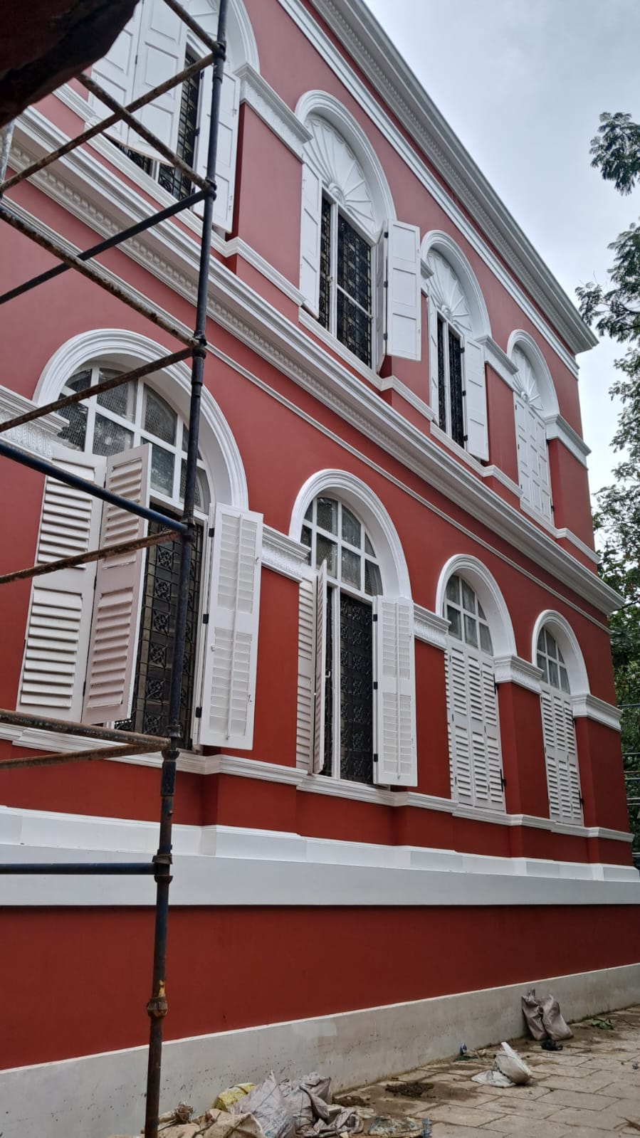 A colonial-era iconic red plastered external finishes and lime-plastered interiors.