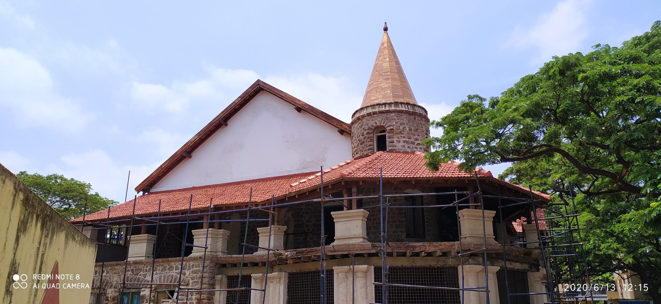 Visakhapatnam’s historic Town Hall, a colonial-era civic icon from the late 19th century, was revitalized to reclaim its role as a community hub. Its Victorian-style facade, mangalore tiled sloping roof, wooden turrets, wooden flooring, whitewashed plaster and tall arched windows, was meticulously restored using lime-based plaster and natural pigments. I crafted restoration plans, conducted defect mapping, and supervised site work, addressing structural cracks and water seepage. Our conservation management plan, developed with Savani Heritage from 2019–2021, ensured compliance with ASI guidelines, preserving the hall’s ornate interiors and robust masonry. The restored Town Hall now thrives as a vibrant venue for cultural events, embodying Visakhapatnam’s rich heritage and fostering community pride in its storied past.