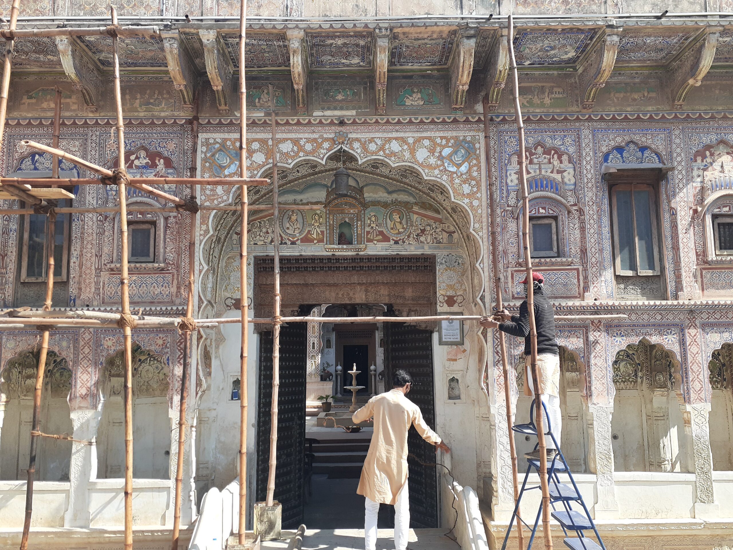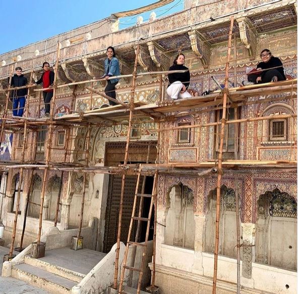 In January 2021, as an intern with an international team of conservators at Le Prince Haveli in Shekhawati, I helped restore the vibrant wall paintings adorning its historic facade. Collaborating with experts from diverse countries and local artisans, we conducted scientific pigment analysis to revive intricate Rajasthani frescoes, using lime-based stabilization and natural pigments. Our meticulous restoration breathed life into faded motifs, preserving Shekhawati’s cultural narrative. We also documented the region’s rich mural heritage, creating detailed condition assessments and protective strategies to combat Rajasthan’s harsh climate. This three-month project, blending global expertise with local craftsmanship, transformed the haveli into a living canvas of history, ensuring its artistry endures for future generations. My role deepened my passion for safeguarding India’s heritage, making every restored stroke a testament to shared cultural legacy.